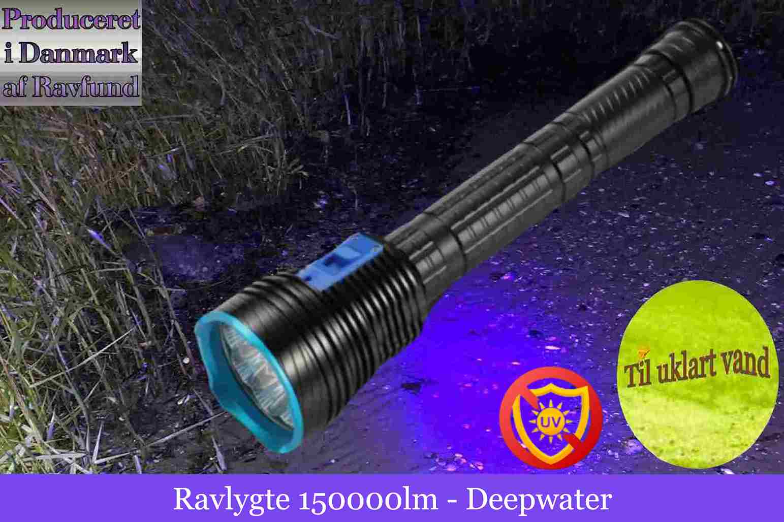 Deepwater 150000lm - Ravlygten leveres inkl. Deepwater Ravbrille fra Ravfund.dk